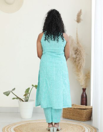 Block printed pure cotton Co Ord set in pastel green colour.