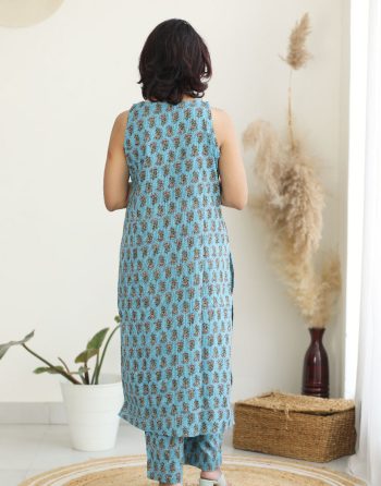 Product Description: Block printed pure cotton Co Ord set